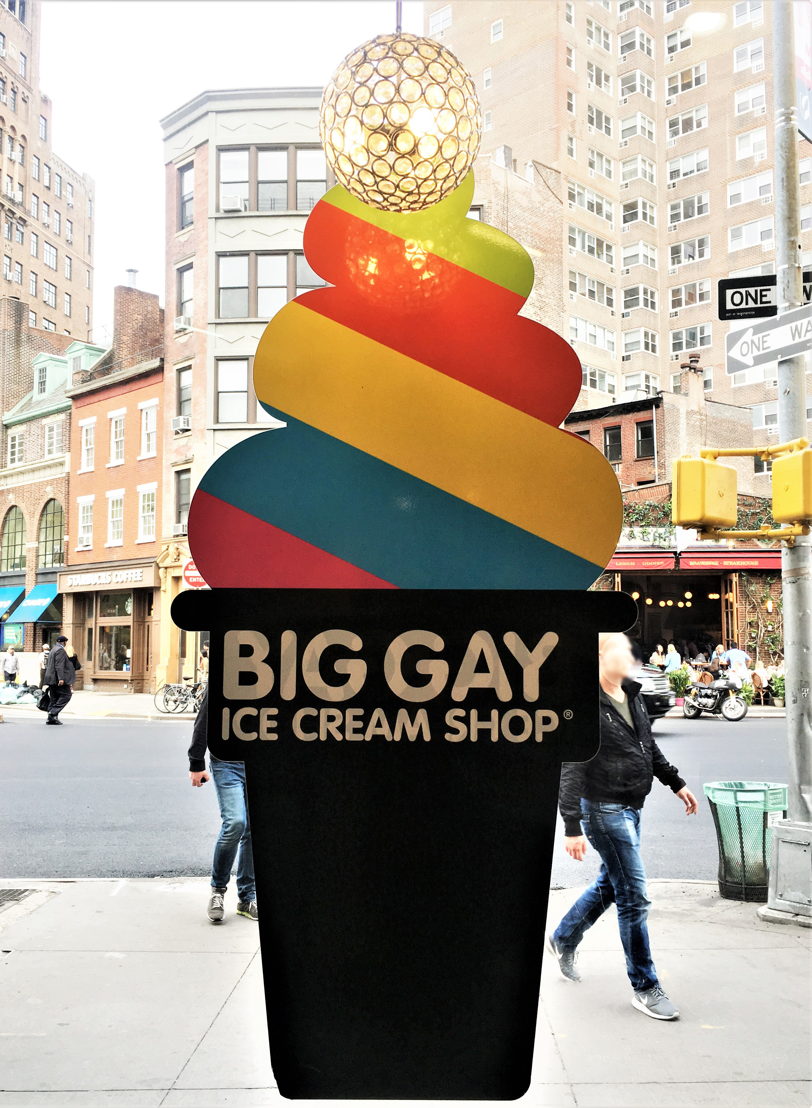 Big Gay Ice Cream locations: NYC East Village (125 East 7th Street), NYC West Village (61 Grove Street), NYC South Street Seaport (11 Fulton Street), and Philadelphia Center City (1351 South Street).