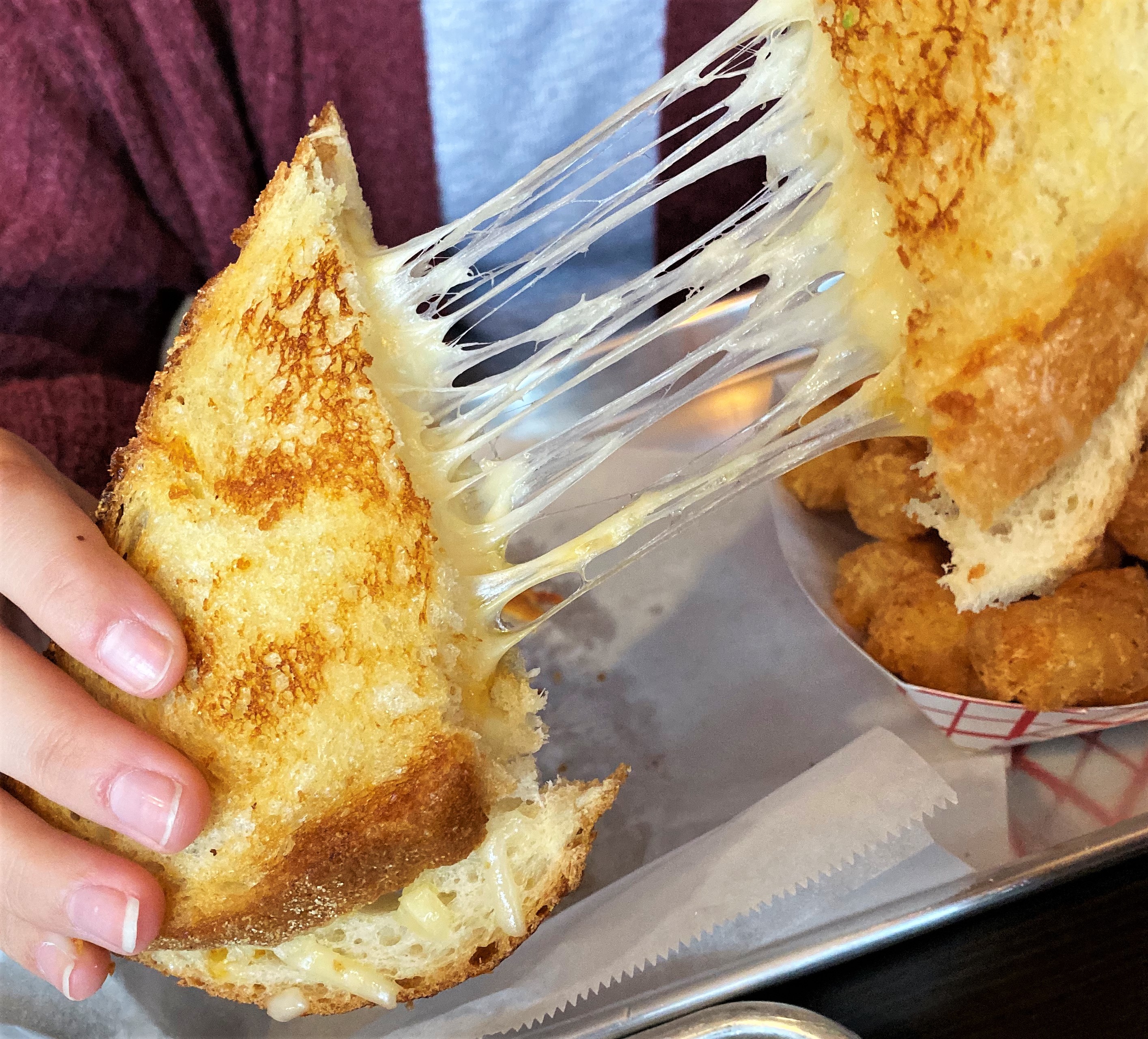 While it doesn’t strip down and perform a sweaty grind all over you (disappointing), the Channing Tater is a Magic Mike blend of silly goodness including bacon, sour cream, scallions, and tater tots all crammed inside a cheesy sandwich.